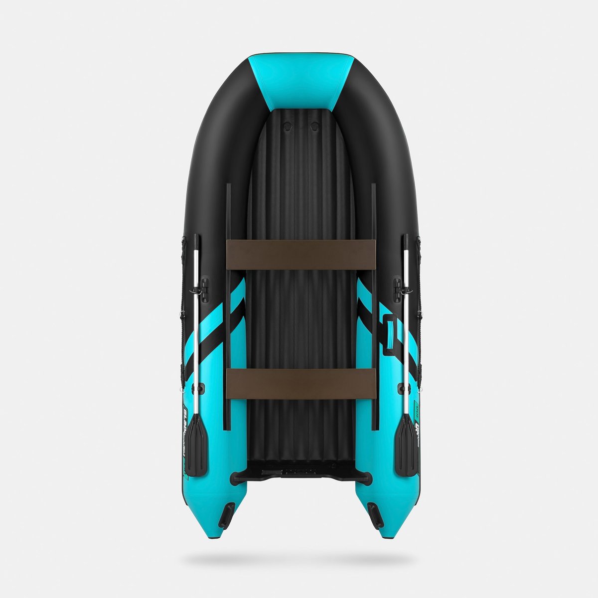 Для повышения износостойкости в наиболее уязвимых зонах — киле и участках баллонов, контактирующих с дном — установлена полиуретановая броня. Это значительно снижает риск повреждений при эксплуатации на каменистых или песчаных участках. Баллоны изготовлены из пятислойного армированного ПВХ плотностью 850 г/м², дно — из усиленного ПВХ плотностью 1100 г/м². Диаметр баллонов — 42 см. Конструкция включает три основные камеры и одну дополнительную — для дна, что обеспечивает безопасность даже при повреждении одной из секций.