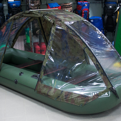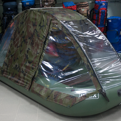 Это практичное и удобное решение, которое оценит каждый, кто бывал в лодочных походах. Тент-палатка точно повторяет форму лодки и устанавливается буквально за несколько минут прямо в процессе эксплуатации.