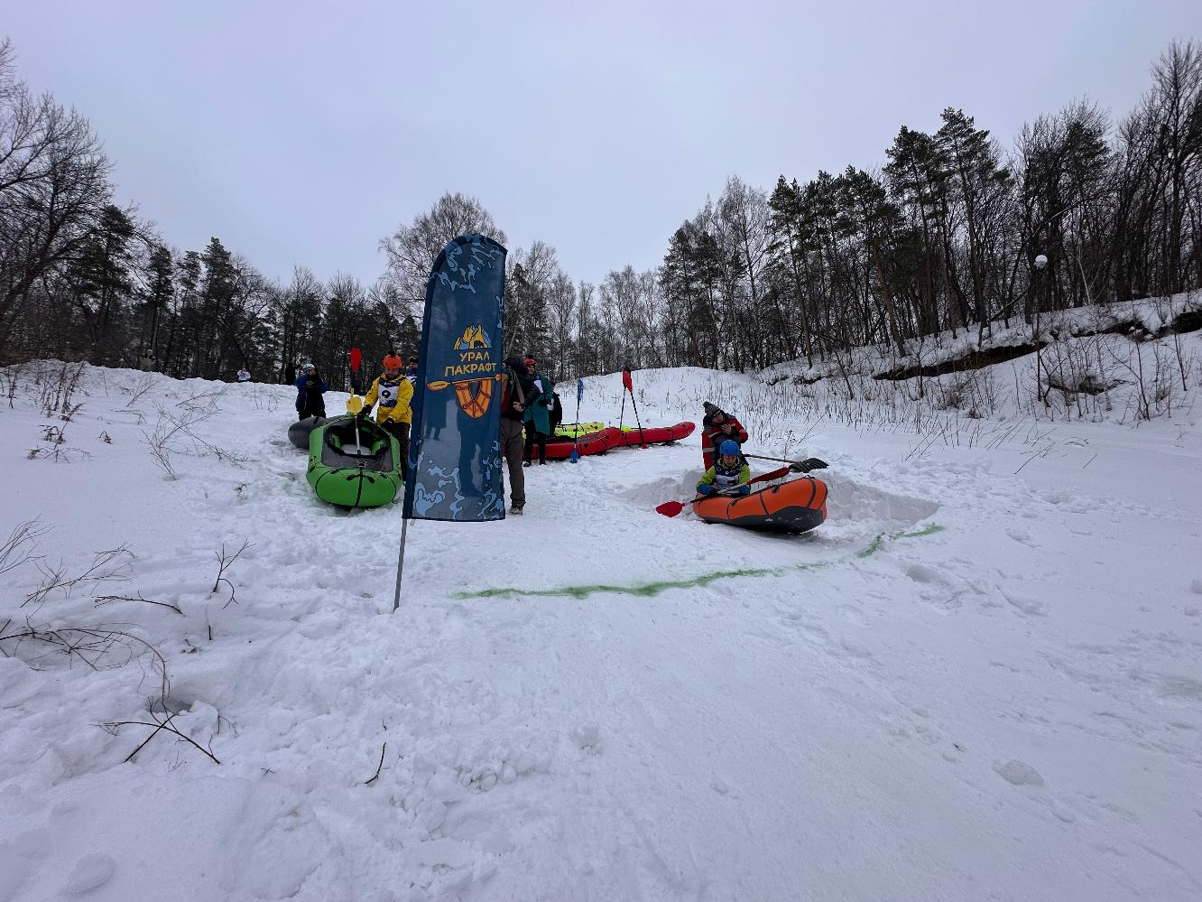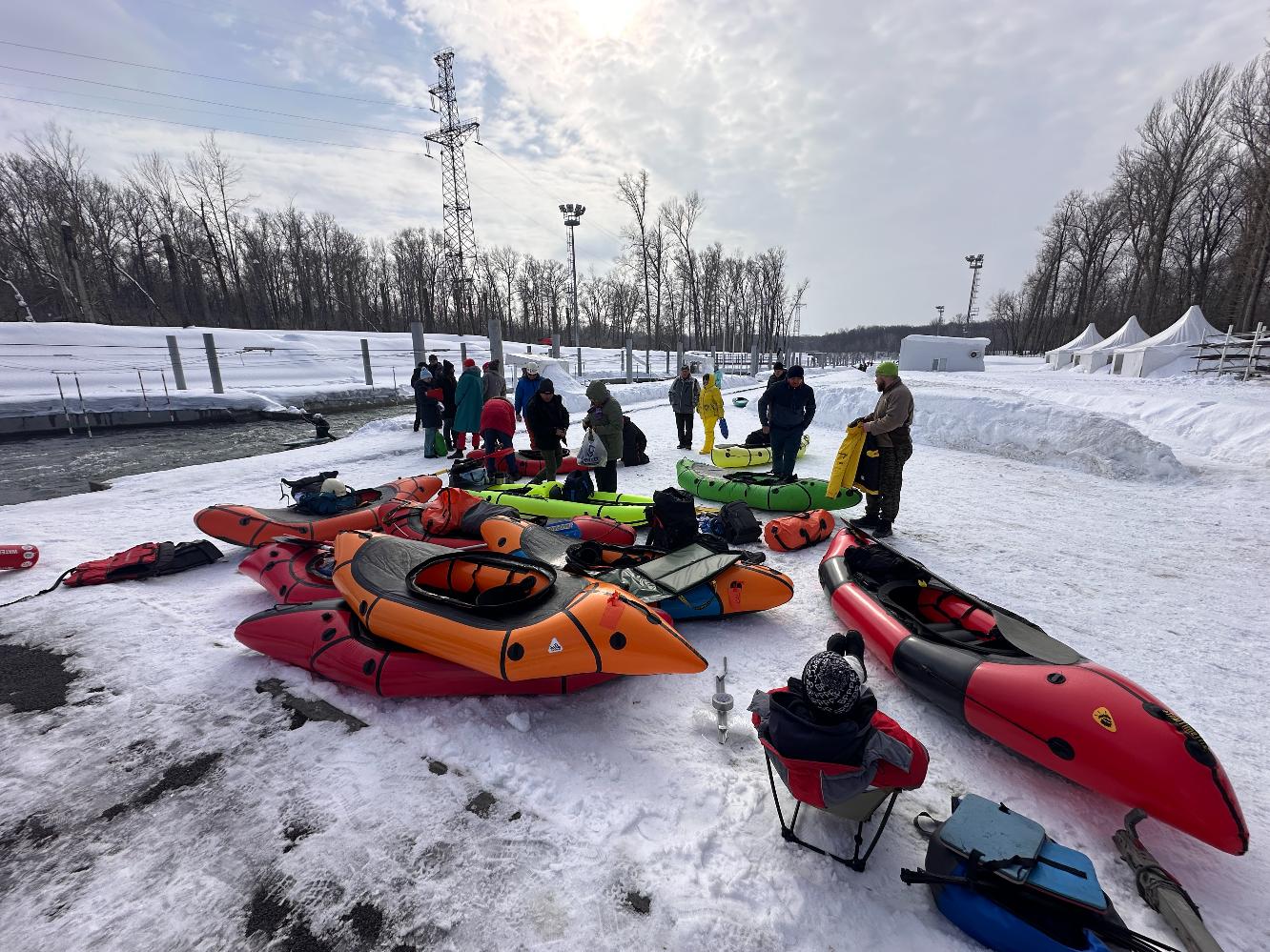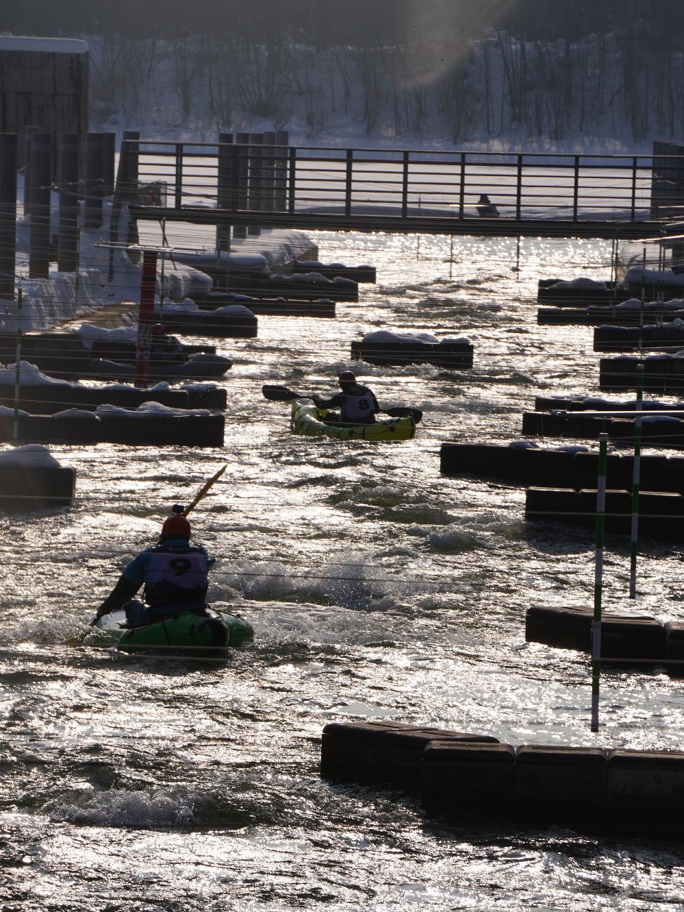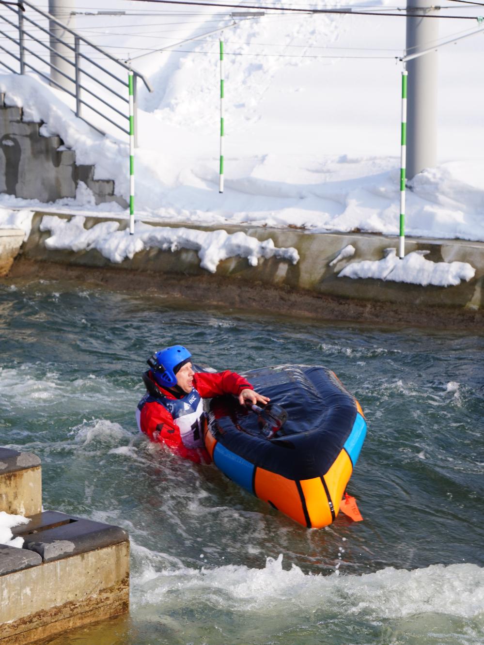 Первая часть соревнований прошла на горном склоне, и это было отличным поводом проверить прочность надувных плавсредств при отрицательной температуре и серьезным нагрузкам на высокой скорости. Все спортсмены, независимо от основного класса, вышли на старт на надувных пакрафтах, где им досталось от прыжков и ударов на ледяном склоне и ударах на полной скорости об ветки и другие препятствия. Не советую повторять такие заезды на крутых склонах, потому что управлять на высокой скорости веслом не так просто, как может казаться со стороны. Но зато заезды получились очень зрелищными, про это будет подробнее показано в нашем видео.
